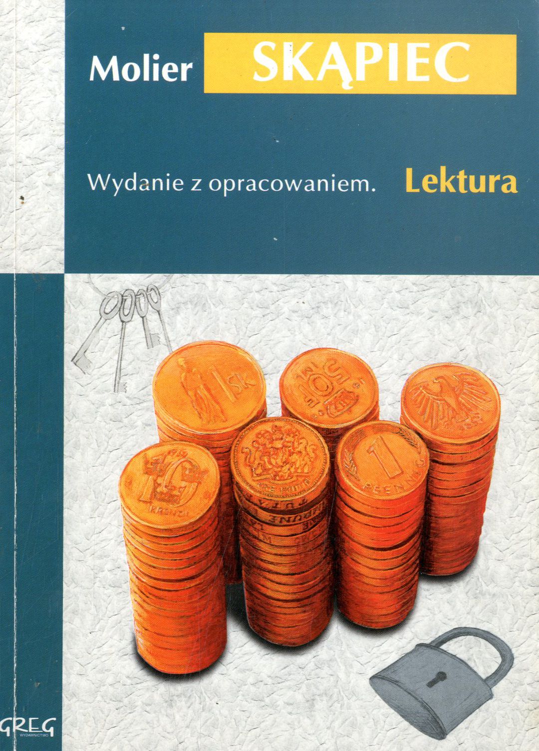 Skąpiec / Molier ; przełożył Tadeusz Żeleński (Boy) ; opracowanie Anna Popławska, Agnieszka Woźny. - Wydanie 3 poprawione. - Kraków : "Greg", copyright 2017. - 118 stron : ilustracje ; 21 cm.