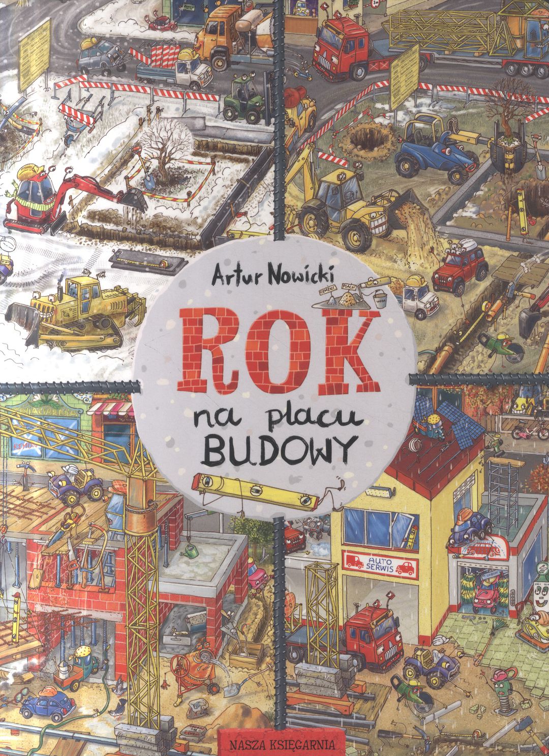 Rok na placu budowy / [ilustracje] Artur Nowicki - Warszawa : Wydawnictwo Nasza Księgarnia, copyright 2020. - [30] stron : ilustracje kolorowe ; 31 cm.
